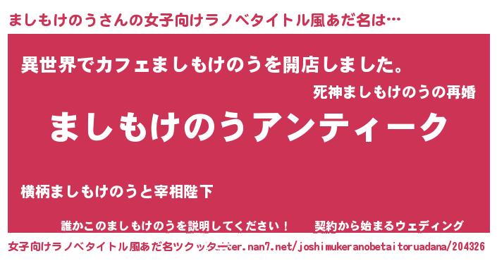| 男性向けラノベタイトル風あだ名 | 『魔法科高校のましもけのう』 |