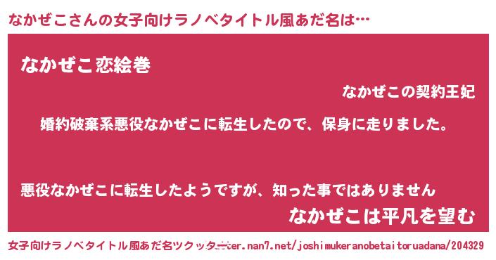 | 男性向けラノベタイトル風あだ名 | 『転生したらなかぜこだった件』 |