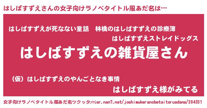 | 男性向けラノベタイトル風あだ名 | 『やはりはしばすずえの青春ラブコメはまちがっている 』 |