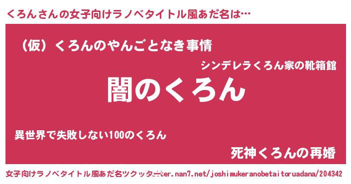 | 男性向けラノベタイトル風あだ名 | 『Re:くろんから始める異世界生活』 |