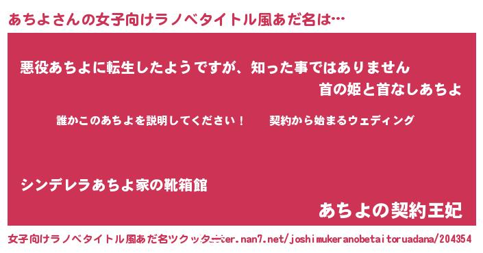 | 男性向けラノベタイトル風あだ名 | 『アチヨアートオンライン』 |