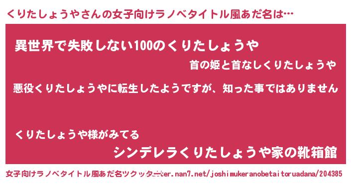 | 意味不明あだ名 | 『住所不定無職くりたしょうや(43歳)』 |