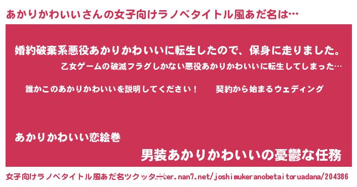 | 男性向けラノベタイトル風あだ名 | 『アカリカワイイアートオンライン』 |