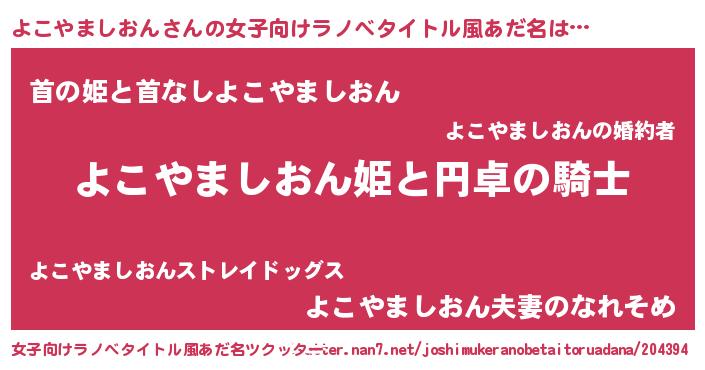 | 男性向けラノベタイトル風あだ名 | 『ヨコヤマシオンアートオンライン』 |