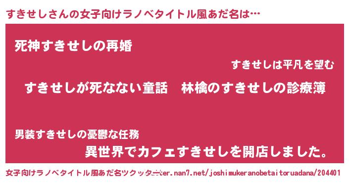 | 意味不明あだ名 | 『住所不定無職すきせし(59歳)』 |
