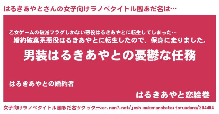 | 意味不明あだ名 | 『住所不定無職はるきあやと(12歳)』 |