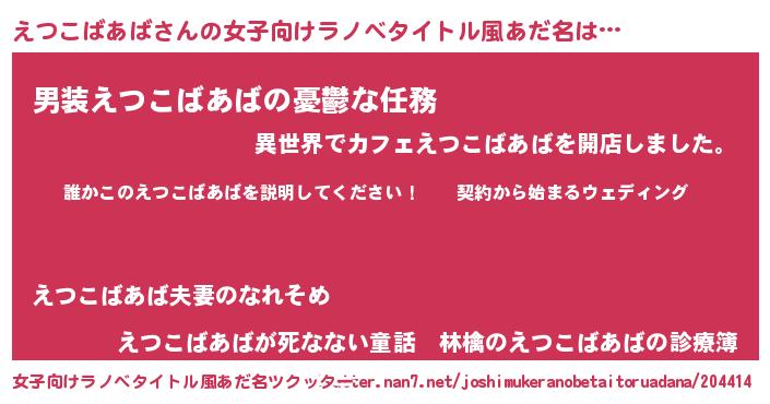| 男性向けラノベタイトル風あだ名 | 『エツコバアバアートオンライン』 |