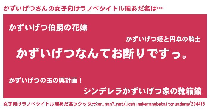 | 肩書あだ名 | 『かずいげつ閣下』『かずいげつ国家主席』 |