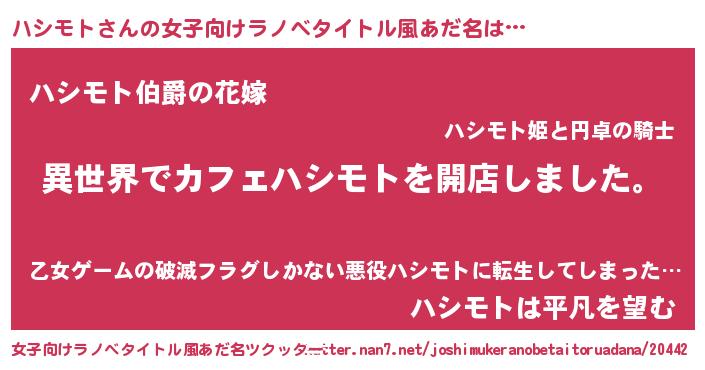 | 胡散臭い通販商品みたいなあだ名 | 『前代未聞の健康食品…その名も「ハシモト」』 |