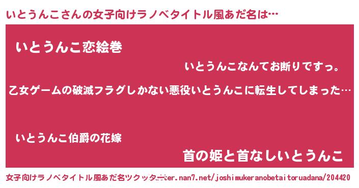 | 男性向けラノベタイトル風あだ名 | 『魔弾の王といとうんこ』 |