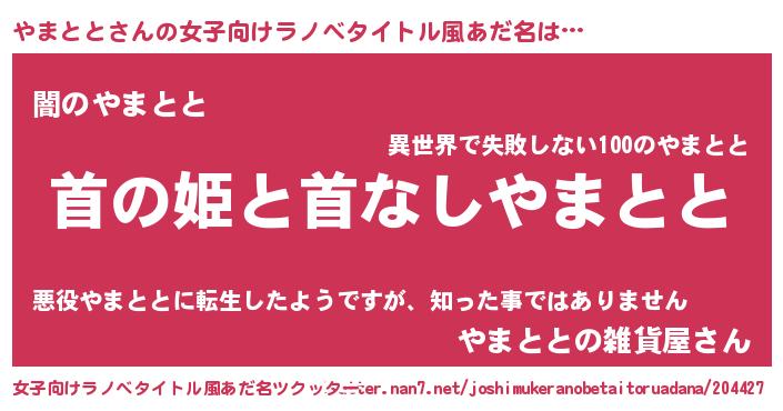 | 男性向けラノベタイトル風あだ名 | 『はたらくやまととさま!』 |