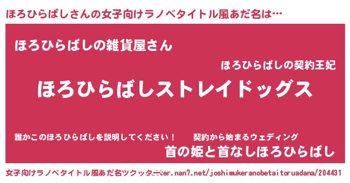 | 男性向けラノベタイトル風あだ名 | 『Re:ほろひらばしから始める異世界生活』 |