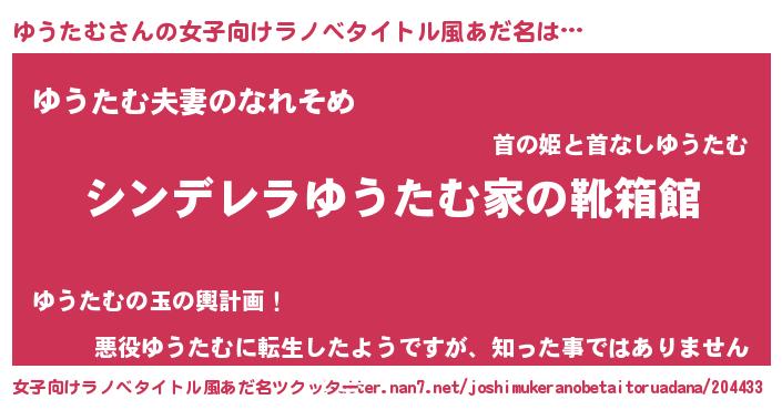 | 男性向けラノベタイトル風あだ名 | 『緋弾のユウタム』 |