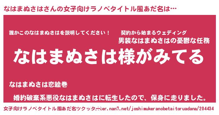 | 伝説のあだ名 | 『覚醒した遊び人なはまぬさは』 |