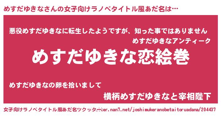 | 男性向けラノベタイトル風あだ名 | 『ノーゲーム・ノーメスダユキナ』 |