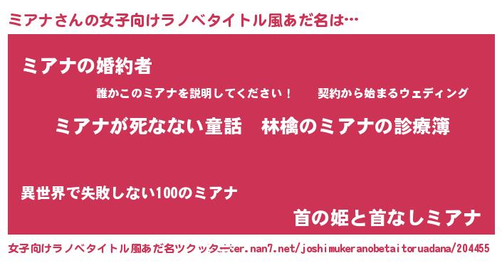 | 意味不明あだ名 | 『住所不定無職ミアナ(89歳)』 |