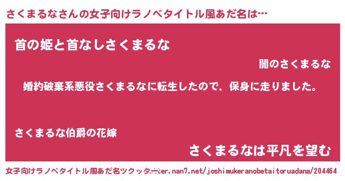| 恥ずかしいあだ名 | 『サクリンリン』『サクマルナデラックス』 |