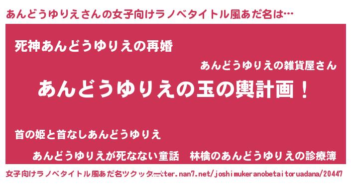 | ヒーロー風カッコイイあだ名 | 『慈愛の使者あんどうゆりえ』 |