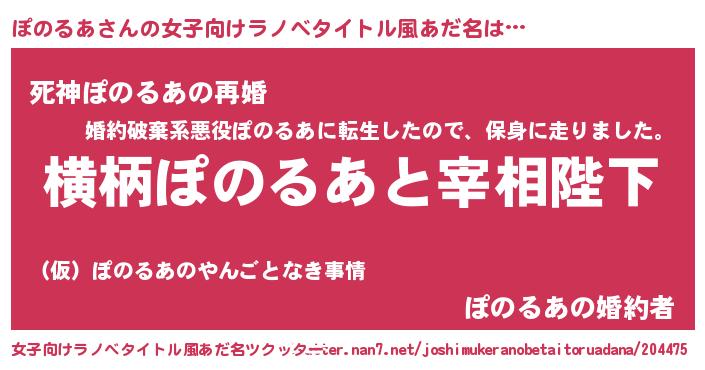 | ヒーロー風カッコイイあだ名 | 『慈愛の使者ぽのるあ』『仮面ポノダー』 |