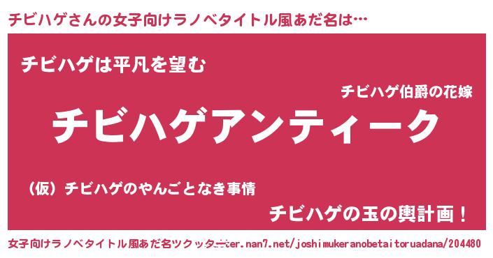 | 男性向けラノベタイトル風あだ名 | 『魔法科高校のチビハゲ』 |
