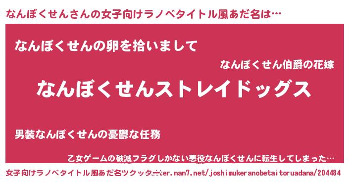 | ヒーロー風カッコイイあだ名 | 『究極戦士ナンボクセン』『幻影騎士ナン』 |