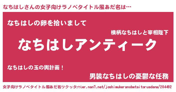 | 意味不明あだ名 | 『自称なちはし』『つくし科なちはし属』 |