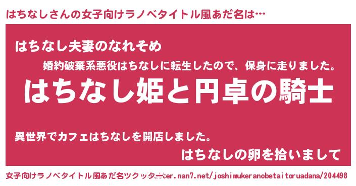 | ヒーロー風カッコイイあだ名 | 『スーパーハチナシ』『魔戒騎士ハチ』 |