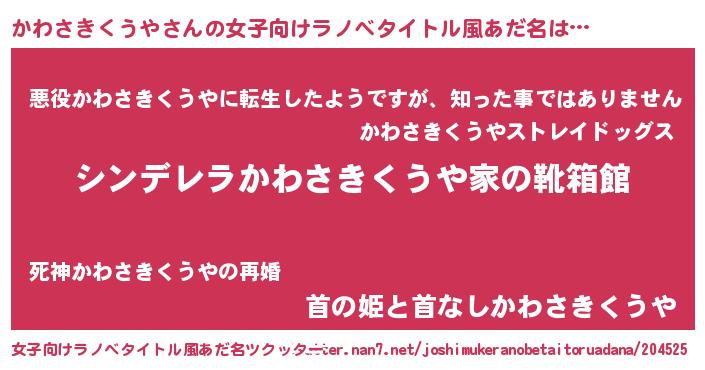 | 男性向けラノベタイトル風あだ名 | 『緋弾のカワサキクウヤ』 |