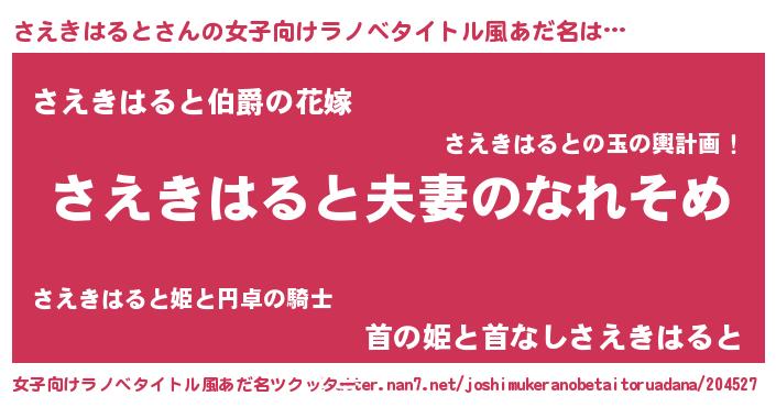 | 男性向けラノベタイトル風あだ名 | 『おまえをオタクにしてやるから、俺をさえきはるとにしてくれ! 』 |