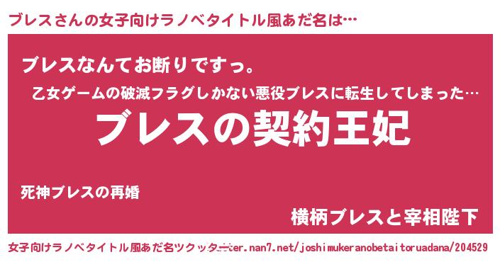 | 胡散臭い通販商品みたいなあだ名 | 『来世でも幸せになれる健康食品…その名も「ブレス」』 |