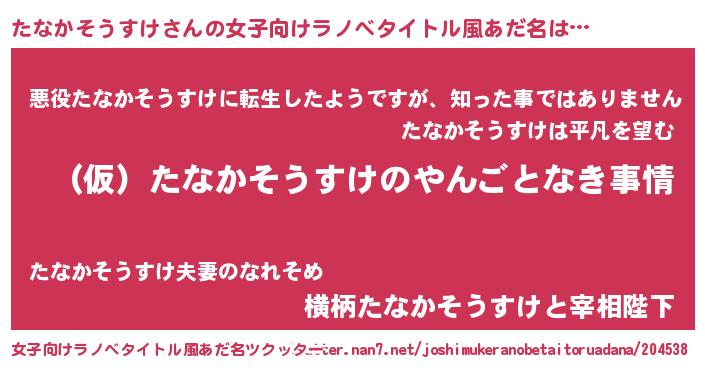 | 男性向けラノベタイトル風あだ名 | 『たなかそうすけの憂鬱』 |