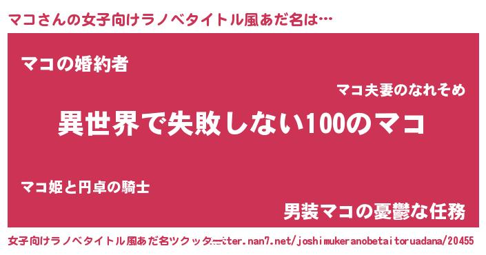 | 男性向けラノベタイトル風あだ名 | 『マコという概念が存在しない退屈な世界 』 |