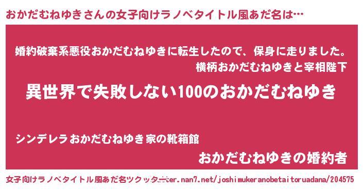 | 男性向けラノベタイトル風あだ名 | 『おかだむねゆきという概念が存在しない退屈な世界 』 |