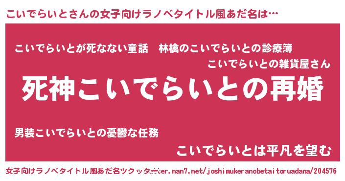 | 男性向けラノベタイトル風あだ名 | 『ノーゲーム・ノーコイデライト』 |