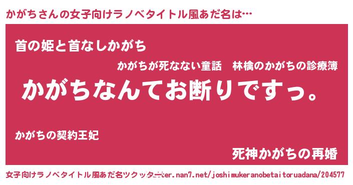 | 意味不明あだ名 | 『自称かがち』『眠気覚ましガムかがち味』 |