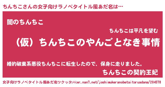 | 男性向けラノベタイトル風あだ名 | 『ちんちこの憂鬱』 |