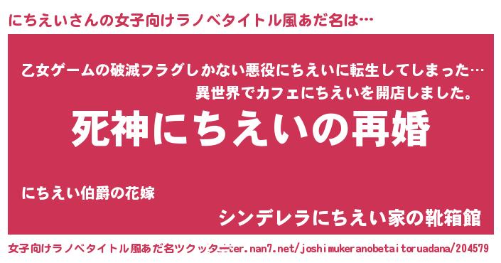 | 男性向けラノベタイトル風あだ名 | 『ノーゲーム・ノーニチエイ』 |