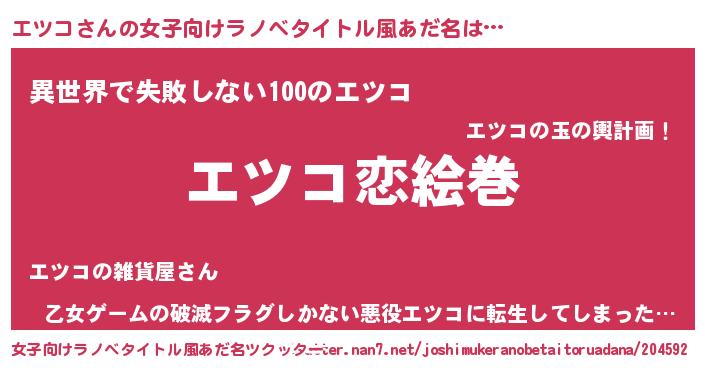 | 男性向けラノベタイトル風あだ名 | 『ノーゲーム・ノーエツコ』 |