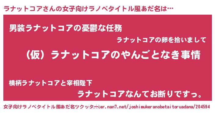 | 男性向けラノベタイトル風あだ名 | 『ラナットコアの憂鬱』 |