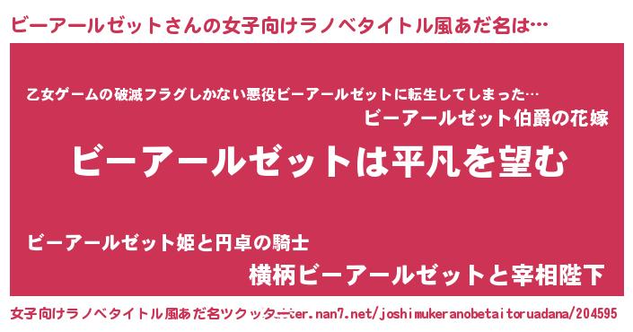 | 男性向けラノベタイトル風あだ名 | 『ダンジョンにビーアールゼットを求めるのは間違っているだろうか』 |