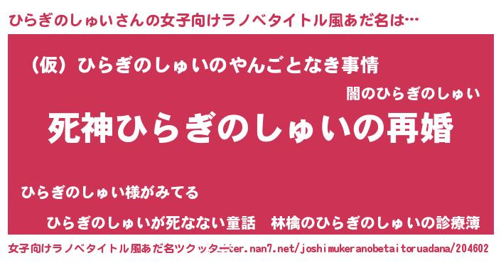 | ヒーロー風カッコイイあだ名 | 『慈愛の使者ひらぎのしゅい』 |