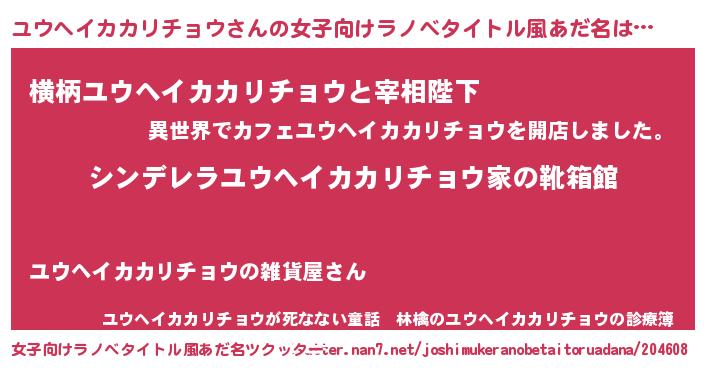 | 男性向けラノベタイトル風あだ名 | 『緋弾のユウヘイカカリチョウ』 |