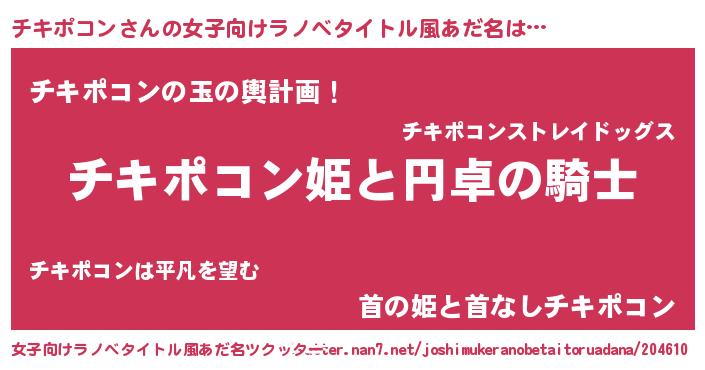 | 胡散臭い通販商品みたいなあだ名 | 『モテモテ間違いなし水晶球…その名も「チキポコン」』 |