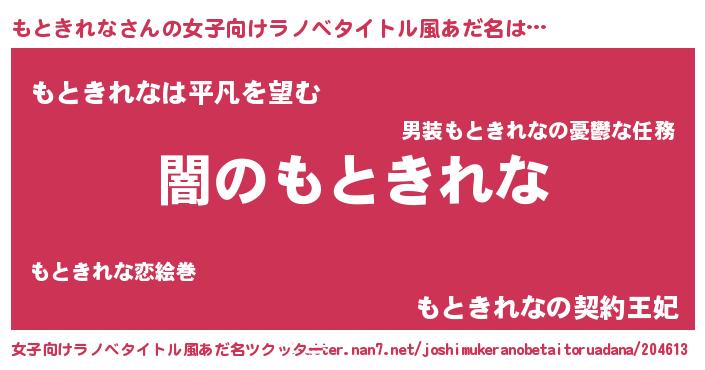 | 意味不明あだ名 | 『自称もときれな』『永久保存もときれな』 |