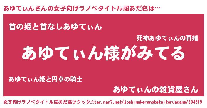 | ヒーロー風カッコイイあだ名 | 『炎刃騎士アユ』『天空の使者あゆてぃん』 |