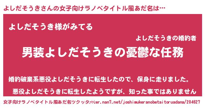 | 男性向けラノベタイトル風あだ名 | 『冴えないよしだそうきの育てかた』 |