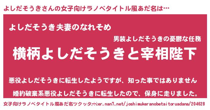 | 男性向けラノベタイトル風あだ名 | 『よしだそうきに滅ぼされるだけの簡単なお仕事です』 |