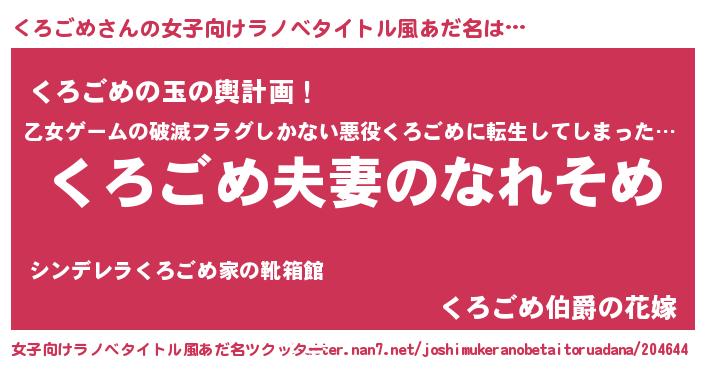 | 男性向けラノベタイトル風あだ名 | 『おまえをオタクにしてやるから、俺をくろごめにしてくれ! 』 |