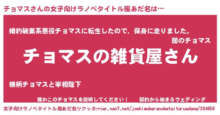 | 意味不明あだ名 | 『チョマスフォーエバー』『自称チョマス』 |