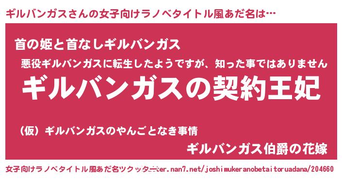 | 男性向けラノベタイトル風あだ名 | 『ギルバンガスという概念が存在しない退屈な世界 』 |